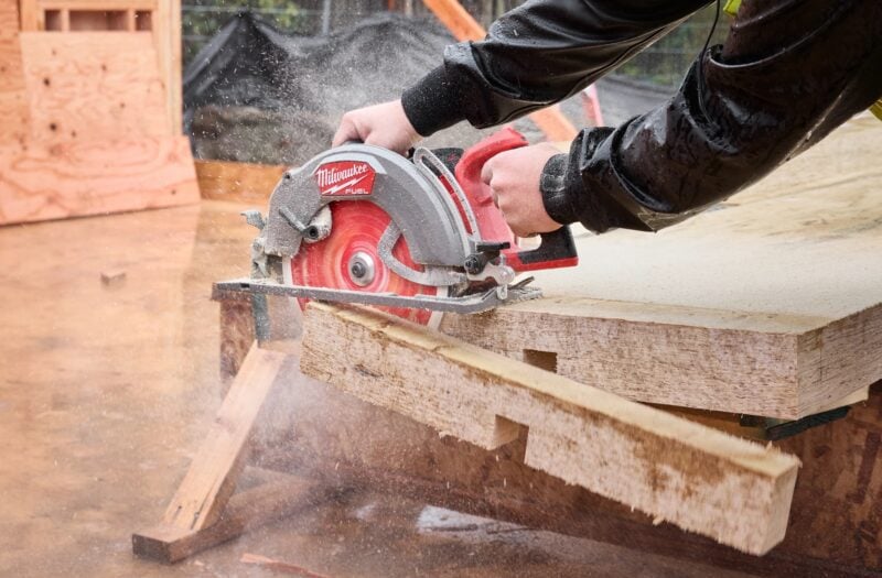 The M18 Fuel 10 1/4-Inch Rear Handle Circular Saw is the largest circular saw in Milwaukee’s cordless lineup. Engineered with professional carpenters, remodelers, and general contractors in mind, its has a max cutting depth of 3 13/16 inches at 90°. This allows it to power through 4x lumber in a single pass!