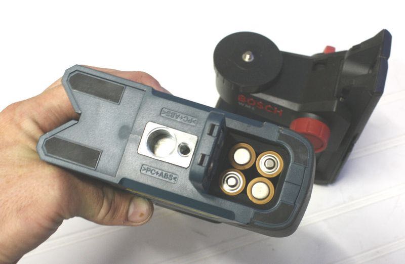 The included stand makes setting up and fine-tuning the GLL2-80 dual plane laser level a breeze. The stand has an adjustment knob, so you can easily set it up and then configure the exact height of the level. Should you want to mount the level on a tripod, it comes with both 1/4″ and 5/8″ threaded inserts in the base that make it so you can set it on most camera or surveyor tripods. Power for the level comes from four AA batteries.