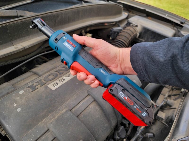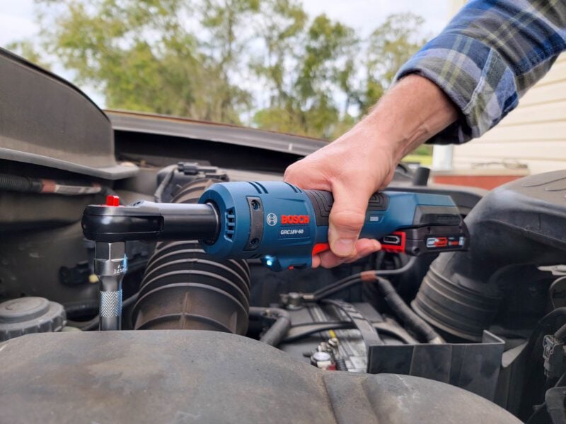 At the heart of this 18V cordless ratchet is a brushless motor that produces a solid 45 ft-lbs (540 in-lbs) of torque with a top speed of 400 RPMs. As far as the torque goes, it’s on par with what we expect, though there are other brands pushing the bar further. The speed is on the high end, giving Bosch an advantage when you’re working with longer bolts.