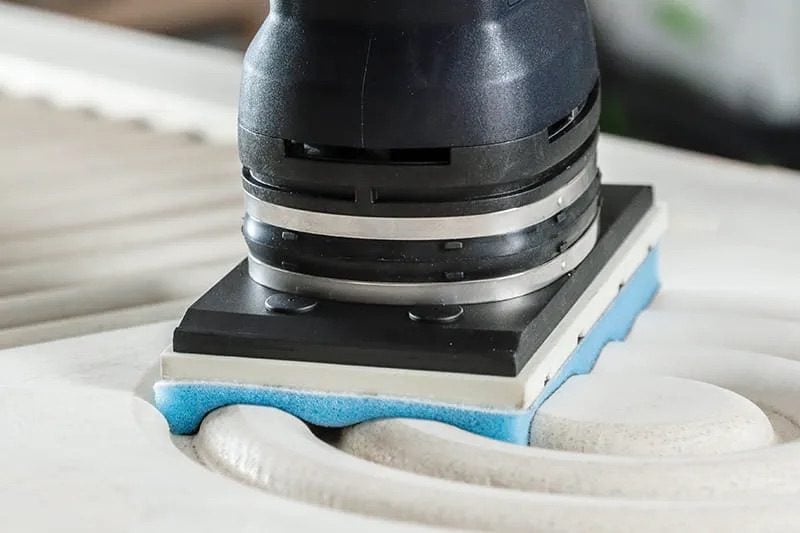 While foam backing for power sanders isn’t a brand-new concept. However, Festool is the first major power tool brand to offer a full lineup of foam-backed sanding accessories specifically for detail sanding with a power sander.