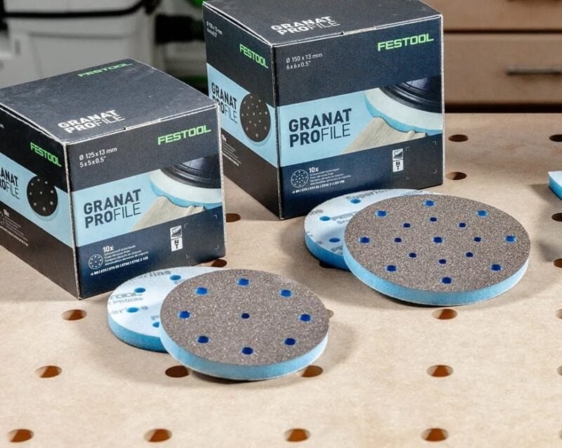 The PROfile sanding pads are equipped with Festool’s well-known Granat abrasive material, which the brand describes as self-sharpening, non-stick, and dust-repellent, providing a smooth and easy sanding experience with an even finish.