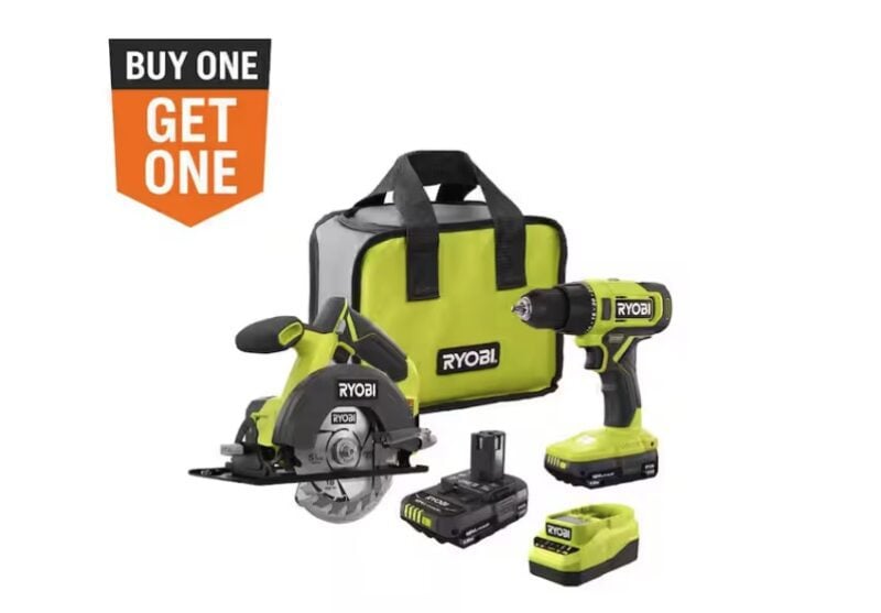 Just in time for the holidays, The Home Depot is offering a FREE Ryobi bare tool when you purchase a PCL1201K2 18V drill/circular saw kit.