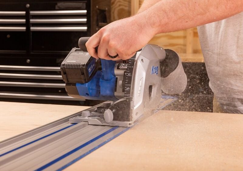 Finally, the final Kreg cordless power tool we’re covering from the new launch is the 6 1/2-inch Plunge-Cut Track Saw. Paired with the Kreg 62-inch Guide Track (sold separately), this model delivers smooth, straight cuts in a variety of materials.