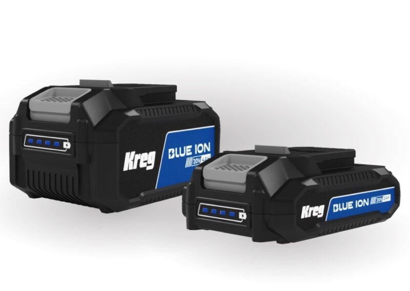 For Kreg’s first stab at power tools, it all starts with the battery. These tools are powered by the new Kreg Blue Ion 20V batteries. They’re outfitted with optimized electronics that communicate with the tools’ brushless motors for enhanced runtimes and high performance.
