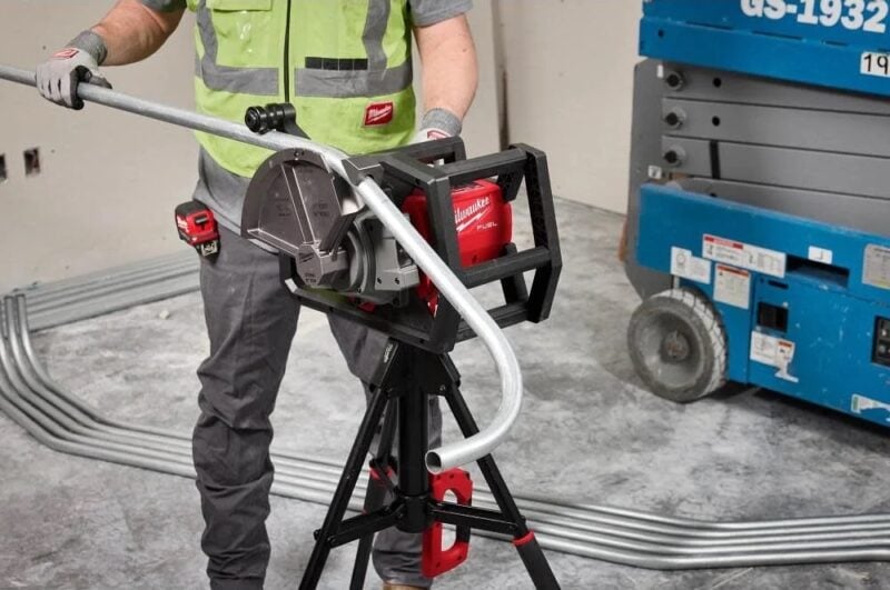 The Milwaukee M18 Fuel Conduit Bender retails for $2,999 as a bare tool, including two conduit bending shoes, a tripod, and a backformer.
