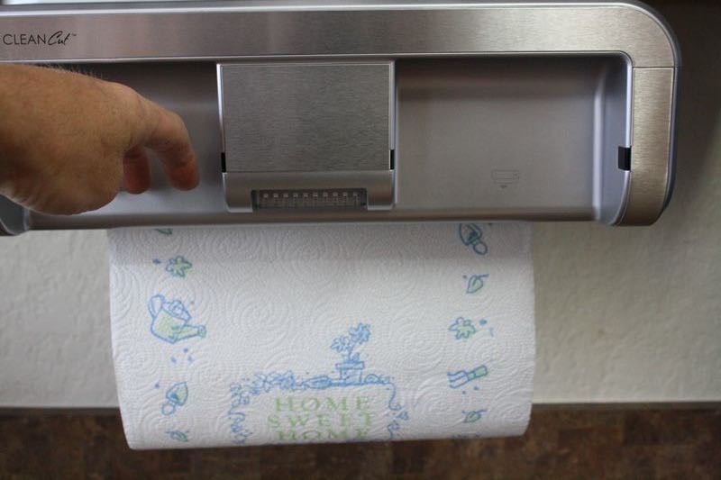 Installation was indeed easy, largely because all of the required hardware was included and there was a full template for the mounting holes we drill into the cabinet from above. The CLEANCut Paper Towel Dispenser is extremely safe and secure when properly installed and it wasn’t long before we just loaded up a roll of paper towels (not included, lol) and tested it out.