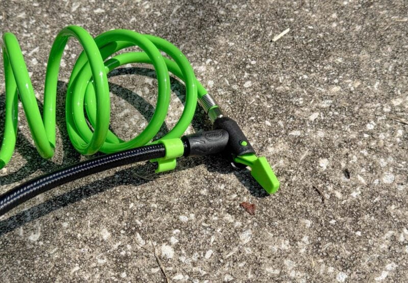 The inflator is connected to a 2.5-foot inflator hose, but if you need extra reach, Slime also includes a 15-foot coiled extension air hose. You can connect the extender hose to the on-unit hose.