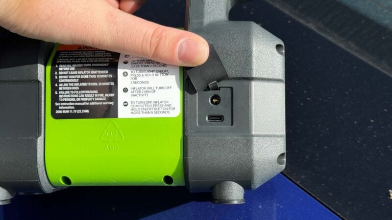 While this model is advertised as a cordless inflator, I like that it comes with a detachable 12V power cable. This gives you the convenience of a cord-free design, but you can also power it using your car’s 12V port in a pinch if the internal battery runs out. It doesn’t charge the battery, but it acts as a backup power source.