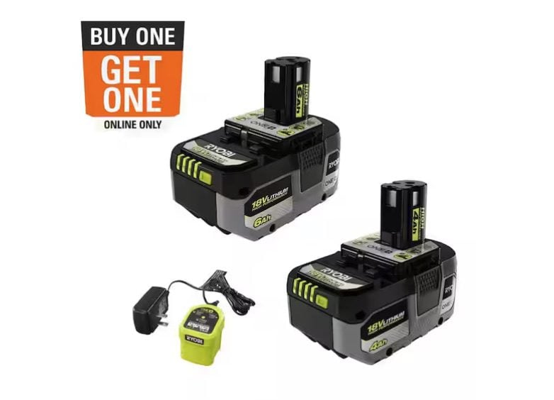 Ryobi 18V One+ 2.0Ah/4.0Ah Battery 2-Pack Starter Kit- Save 51% and get a FREE Tool!
