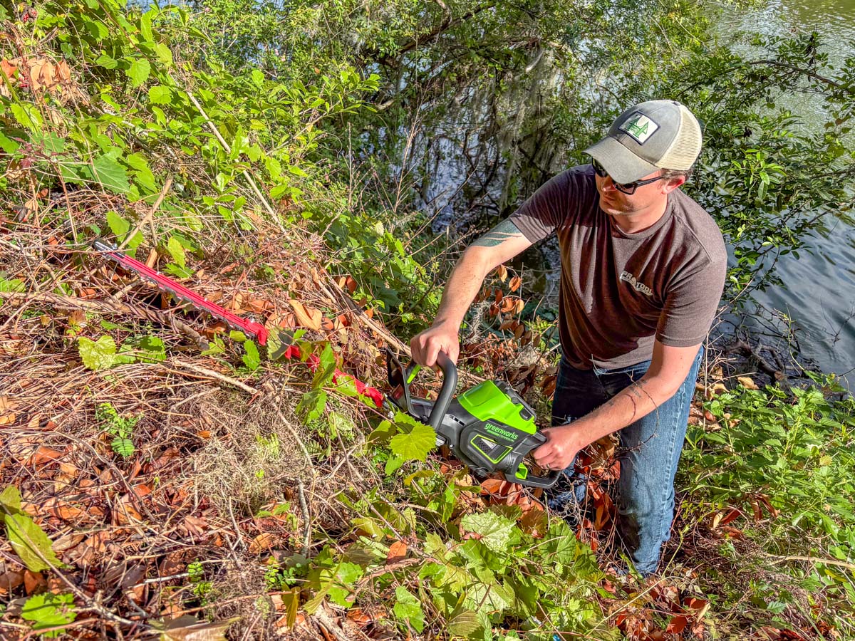 There are a couple of minor tradeoffs to consider. One, using a stronger brushless motor means lower runtime. That’s relative for hedge trimmers since they’re among the most efficient landscaping tools, but worth noting if you have a larger property.