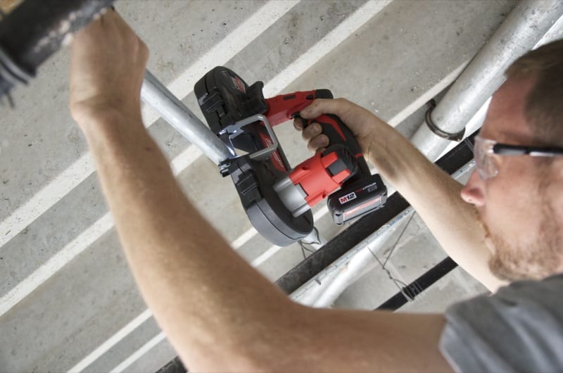 If you rarely cut material larger than 1-1/2โ conduit or pipe and you do a lot of overhead work in tight spaces, the Milwaukee M12 2429-21XC is probably going to be your new best friend. Keep in mind that this is not a full size band saw replacement, but rather one that is ideal for portability. This little saw’s claim to fame is that it is the most compact and lightest cordless band saw on the market. And it really is. It was designed for single hand use from the beginning and its balance is superb as a result. The fact that OSHA can’t get you for not using two hands on this saw should make you smile a nice rebellious smile as you make your overhead cuts. I really appreciated the hinged back blade guard. Release two sliding tabs and you can fling it open, making blade changes swift and easy. Like their 18V saw, the M12 model comes in a nice blow molded hard case and is available as a bare tool version for just $139. Add the company’s 5-year warranty and this is one sweet little saw.