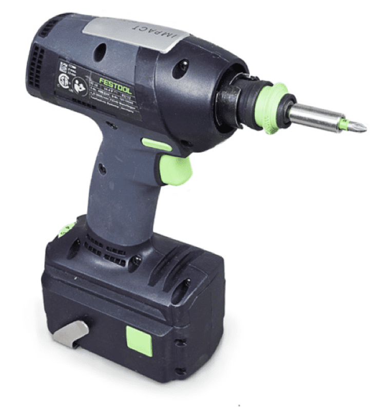 The Festool TI 15 +3 Impact/Drill Driver is the latest addition to this premier German manufacturer’s extensive line of portable power tools. A Freudian slip could be expensive line of tools, for in the German language all Festools are furchtbar teuer or frightfully expensive. On exiting the store you can rest assured you have paid about as much as you can pay for a portable tool. Balancing the extraordinary price, however, is extraordinary innovation, the latest technology and unbelievable build quality. All this is packaged in a nifty plastic case called a Systainer. While many portable tools come in plastic cases, Systainers have a place for most every accessory. They bring further organization by interlocking and clipping together so as not to slide around willy-nilly in the back of your truck. The Festool TI 15 Impact Drill Driver comes with a no-questions-asked, 30-day money back policy and three years of warranty which includes the batteries. For the first year they even pick up the shipping for repair.